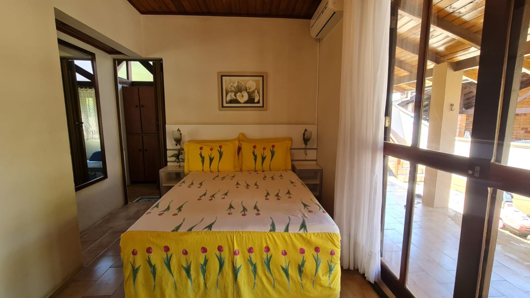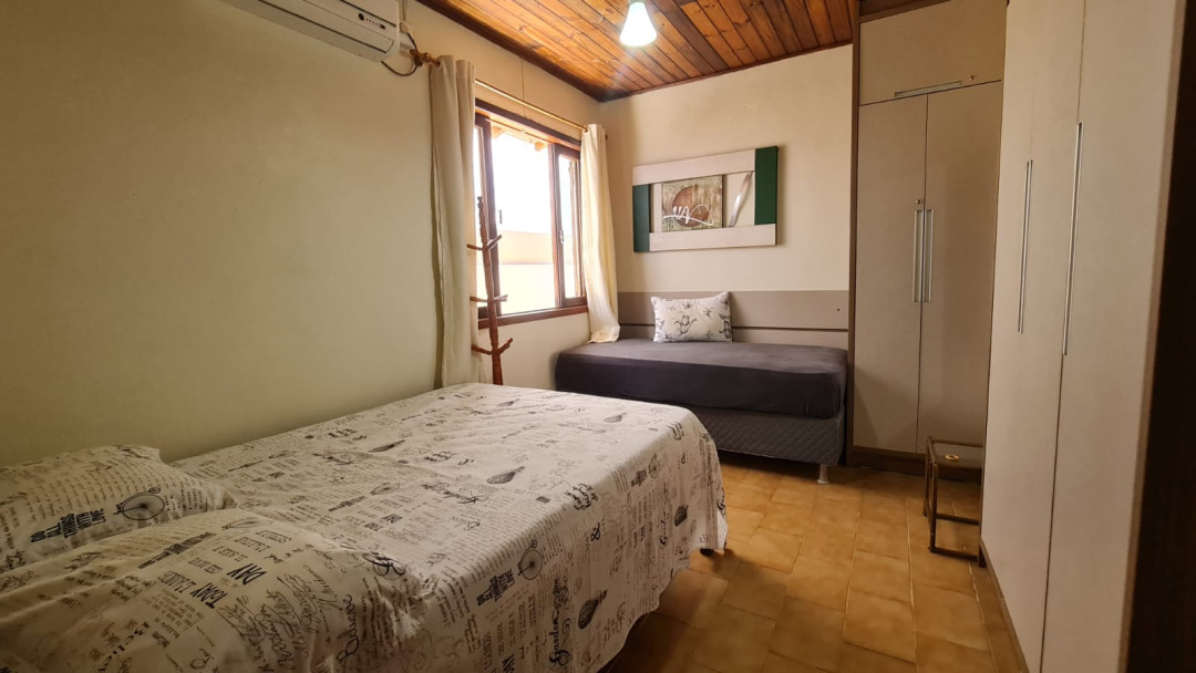 01 dormitório com cama de casal + uma cama de solteiro, com ar-condicionado