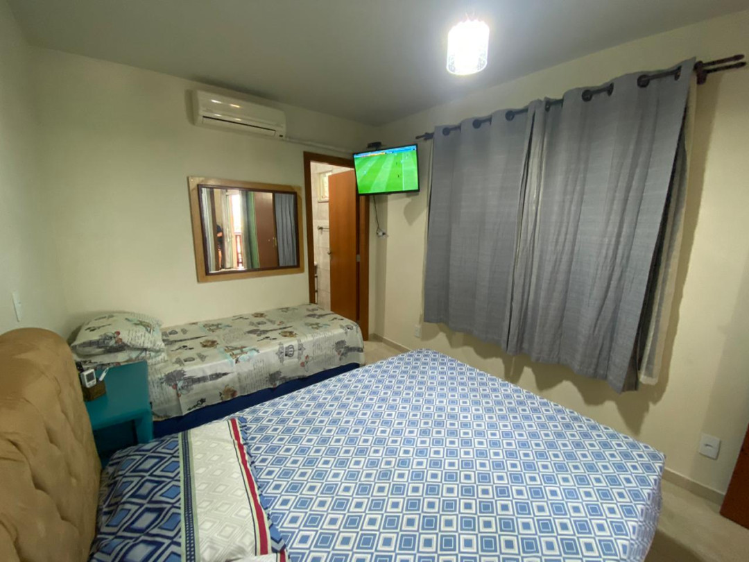 01 dormitório com cama de casal + cama de solteiro, com ar-condicionado