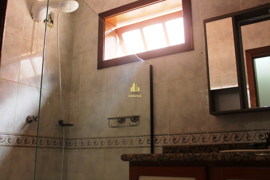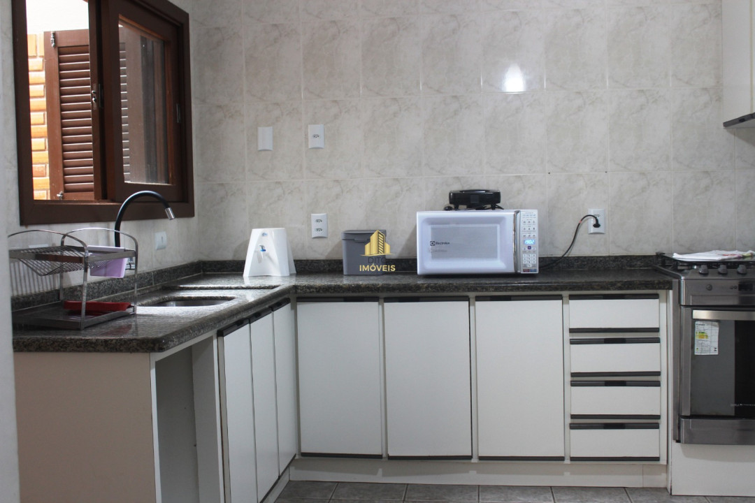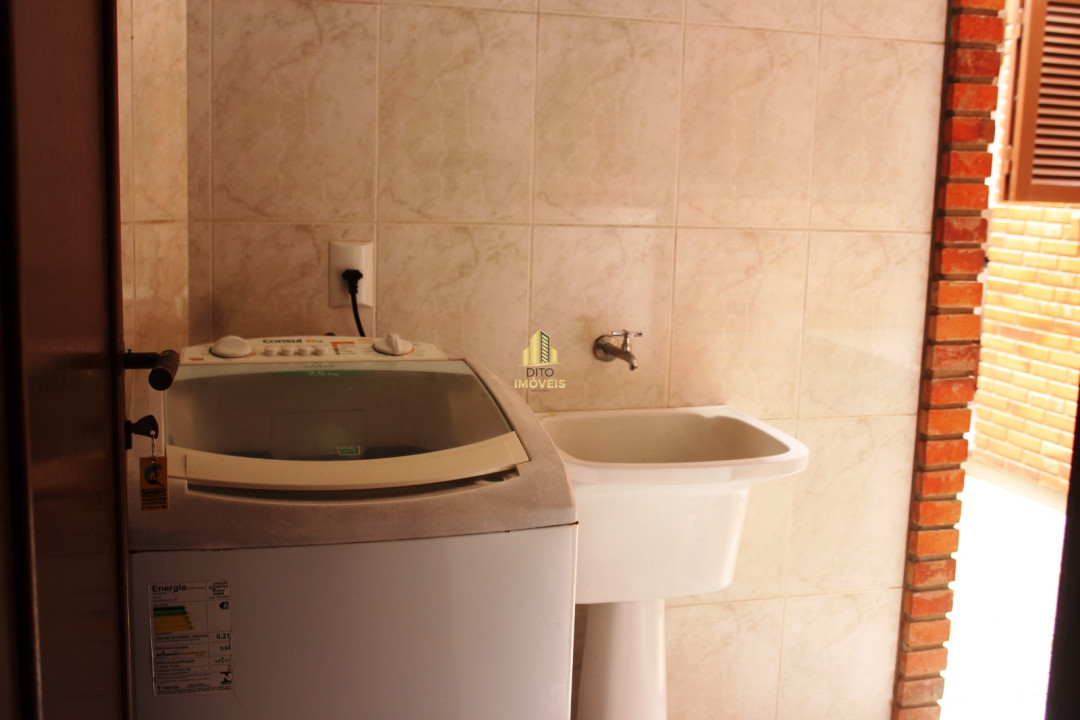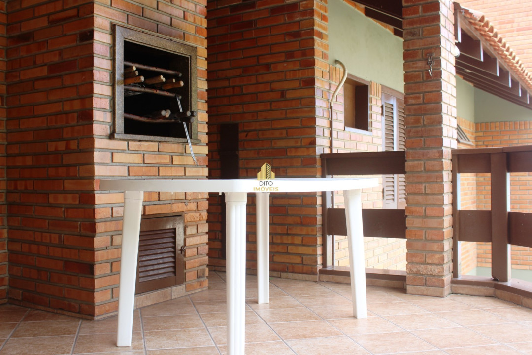 No térreo temos sala de estar e jantar, um lavabo, um banheiro completo, cozinha super equipada com geladeira, freezer máquina de lavar louça e microondas, área de serviço com maquina de lavar roupa, dispensa, garagem coberta para 1 carro mais 1 carro no pátio sem cobertura.